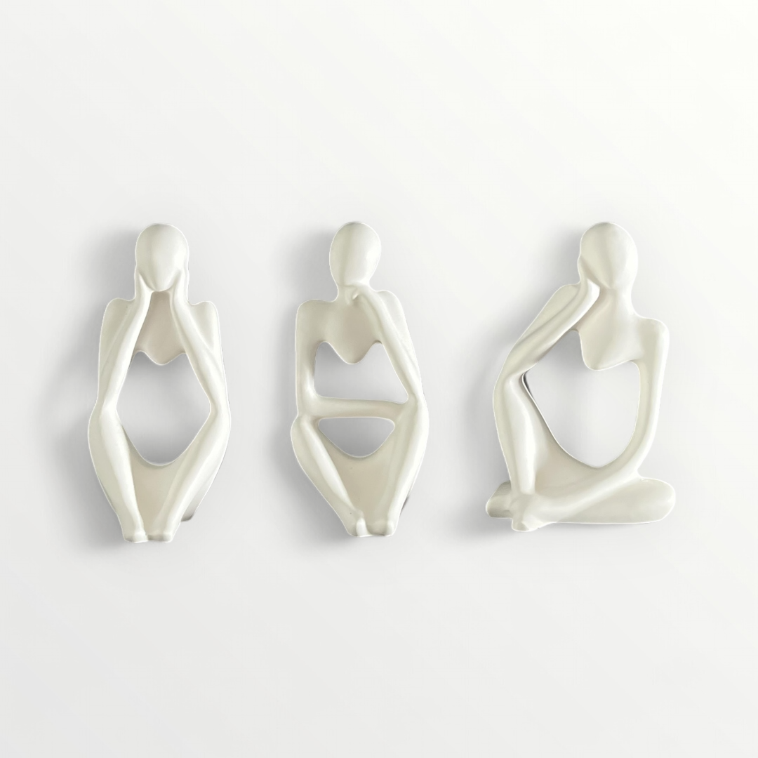 Tres delicadas figuras de resina natural, cuidadosamente moldeadas y pulidas a mano, que transmiten la esencia más pura del amor y la nostalgia.